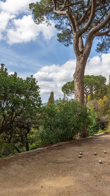 Sous l’ombre légère des pins, le jardin s’ouvre comme une parenthèse de calme.
